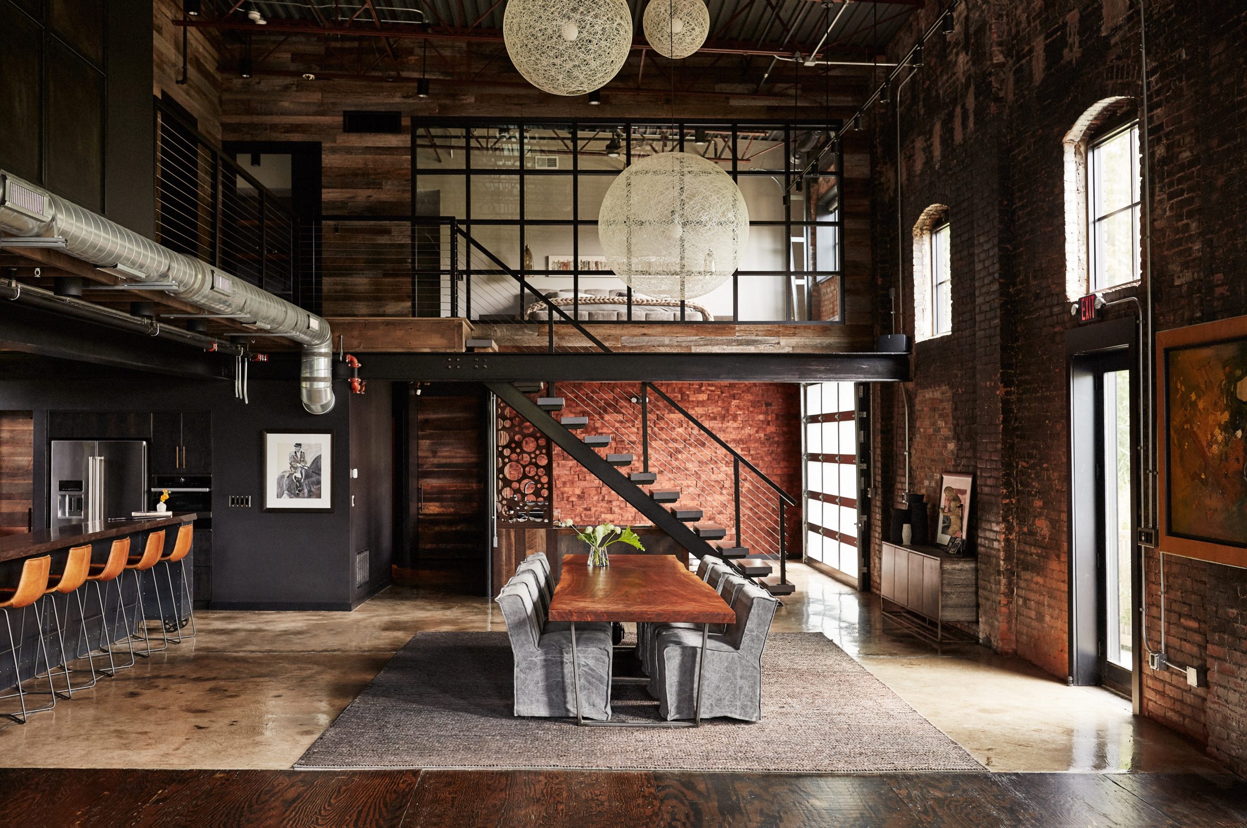 We continued the use, and re-use, of raw rough materials, keeping the original concrete floor, sealing the exposed, original brickwork and bringing in new steel elements such as intricate details in the kitchen and adding a 15’ tall steel bookcase in the living room.